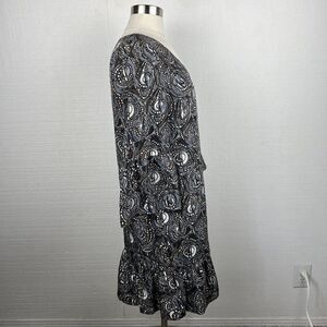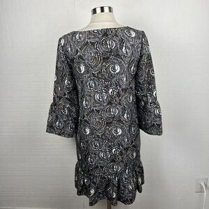 Tibi New York Dress 8 Womens Gray Print Silk 3/4 Sleeves Mini Lined Ruffle Hem