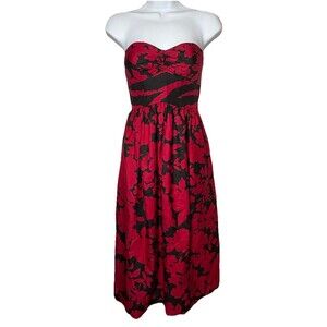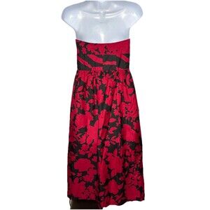 Tibi New York Red Floral Strapless Cocktail Dress Size 2 Silk Wool Blend