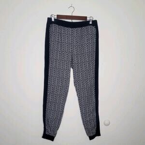 Tibi New York Sz 6 Black White Geometric Mixed Media Motif Tribal Joggers Pants