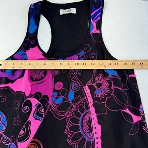 Elevate your party wardrobe with this Tibi New York halter dress, a vibrant masterpiece in multicolor geometric patterns. The sleeveless design and bubble hem create a playful silhouette, perfect for spring soirées and cocktail parties. Crafted from a luxurious blend of silk and polyester, this short dress offers a chic and modern look. Whether you're attending a lively gathering or a sophisticated evening event, this dress ensures you stand out. Pre-owned and measures as a medium, it promises both style and comfort.