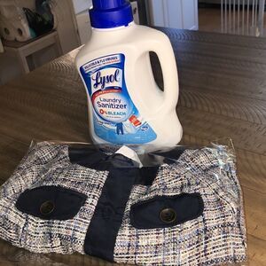 Chic & Polished. Navy, Periwinkle purple, pink, white, gray and black knit blend. Button detail Pockets. 18” crop length. 17” arm pit to arm pit. Sewn in light shoulder pads for shaping. From work to play. Carefully cleaned with Lysol Laundry Sanitizer and stored sealed