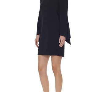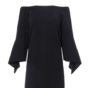 Tibi Off Shoulder Tie Sleeve Crepe Shift Dress Black Loose Fit Size: 0