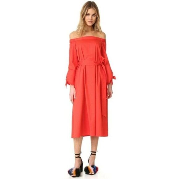 Tibi Off-the-shoulder Cotton-poplin Midi Dress In Ribbon Red 2