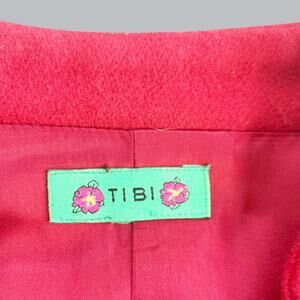 Tibi Red Ornate Wool Blazer Fabric Button Snaps Military Style See Size Note {no size tag}. Wool + nylon. Dry clean. Lined. Long sleeves. Rounded collar. Military, boxy style. Ornate, fabric detailing down front of jacket and across back. Snap and fabric buttons. Buttons do not extend down entire jacket. Leaves a little open at the bottom for flattering fit at hips. Beautiful seaming. See measurements since size tag is missing. Approximate size Medium. I am a large and this is tight on me. Red. Lined. Overall, good preowned condition.