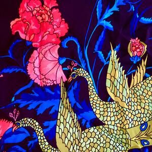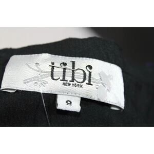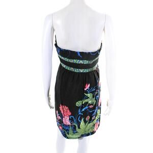 Tibi Palm Beach Floral Garden Peacock Print 100% Silk Black Strapless Dress 8