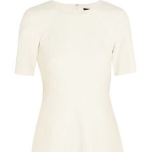 Clean, chic and versatile! Tibi's off-white crepe mini dress will work for a multitude of occasions. The skirt has a flattering A-line cut, and the back zip makes this minimalist style easy to step in to. Add embellished sandals, day or night. VGUC - needs dry-cleaning or stain expertise for underarm marks (see pictures)