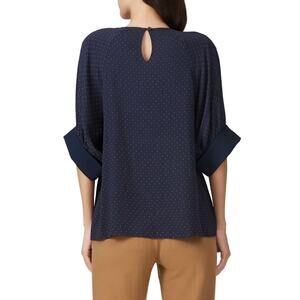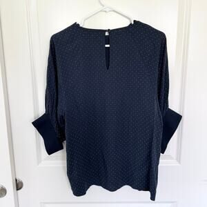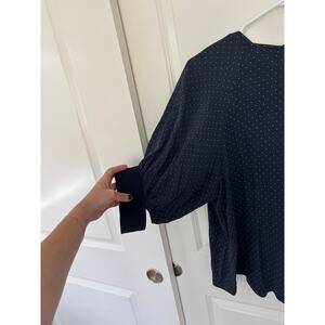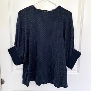 Tibi Pindot Shirred Quarter Sleeve Polka Dot Blouse Blue Small
