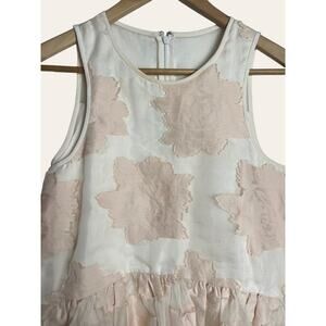 Tibi Pink White Silk Cotton Sleeveless Floral Mesh Preppy Peplum Top Size 2