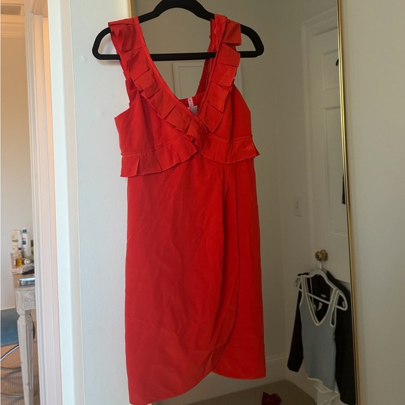 Chic red mini dress with stylish ruffle accents. Perfect for a bold look.