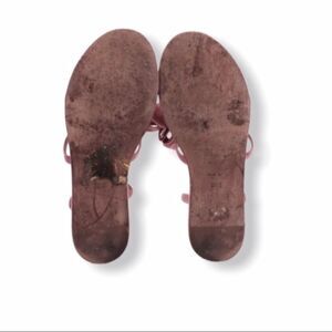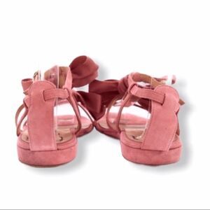 Tibi pink bow sandals with suade exterior and leather sole - some wear to bottoms - in original box and packaging
