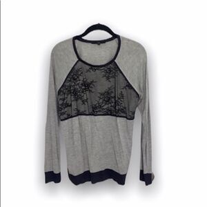 Tibi long sleeve grey top with cuffs at sleeves and a lace overlay in the top