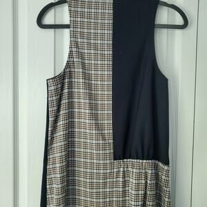 Black color blocked checkered (69% Polyester, 30% Viscose, 1% Elastane). Shift. Sleeveless. Crew neckline. Zipper closure. Front Pockets.