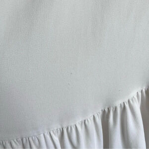 Collared. Flounced peplum bottom. Hidden front bottoms