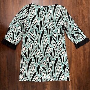 Tibi Shift Dress Size 10 Geometric Pattern Black White Teal