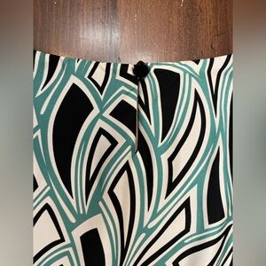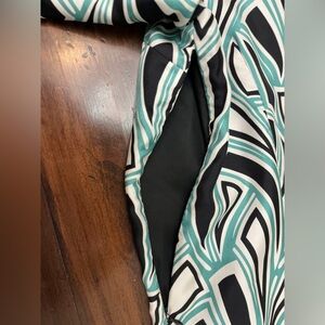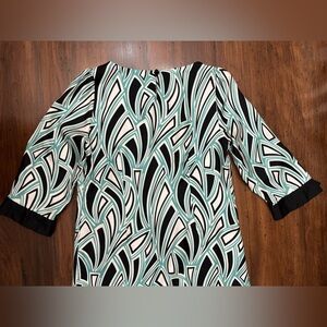 Tibi Shift Dress Size 10 Geometric Pattern Black White Teal 100% Silk Business