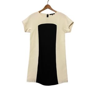 Tibi Short Sleeve Midi Black & White Color Block Stripe Shift Dress Size S