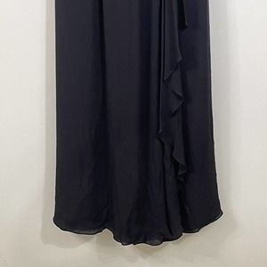 Features: Side zip closure, Round neckline with Scoop Back, Sleeveless, Maxi Length with ruffle hem, Lined, Dry Clean