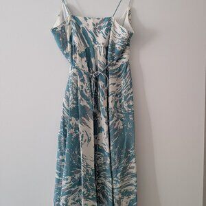 100% silk Tibi dress in cream and turquoise print, size 2.