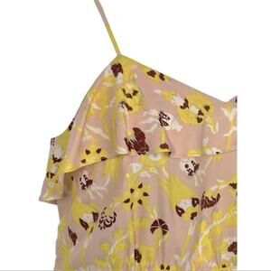 Tibi Silk Floral Abstract Mini Ruffle Tunic Dress Size 8 Yellow Pink Floral