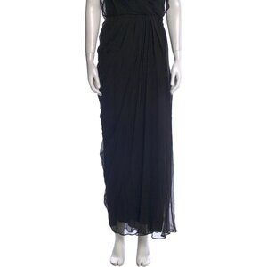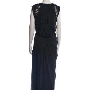 Gorgeous 100% silk long dress with a chiffon-like feel and jeweled accents. In perfect condition. Concealed zip closure at side.