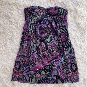 Tibi Silk Multicolored Metallic Bohemian Print Strapless Empire Waist Dress Sz 8