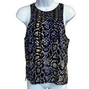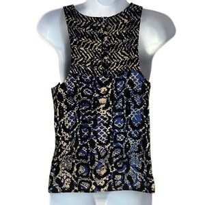 Elevate your wardrobe with this chic women's top featuring a striking blue and black pattern. Perfect for any occasion, this top combines style and comfort effortlessly.