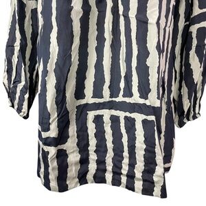 Tibi Silk Wooden Decor Blouse 6 navy white geometric cotton striped balloon