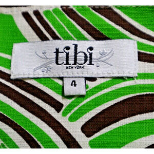Tibi Size 4 Geometric Print 60s Style Mini Dress Cotton Green Brown