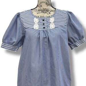 Tibi Size 6 Blue Embroidered Short Sleeve Shift Dress Cottagecore