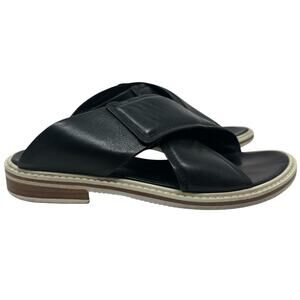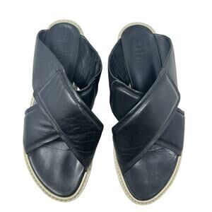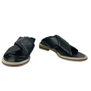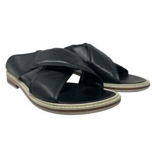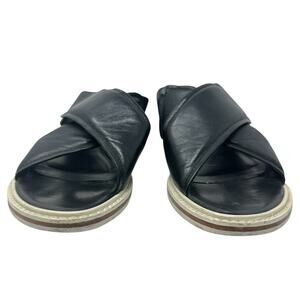 Tibi Slide Sandals Flat Slip-On Cross Strap Leather Black Size 39.5 US 9.5