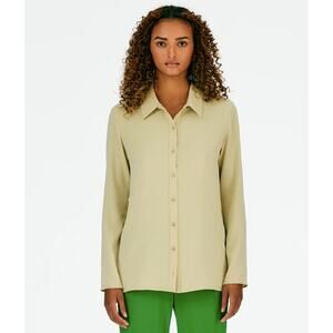 Tibi Soft Drape Slim Button Down Collared Shirt Top Clay Size 8