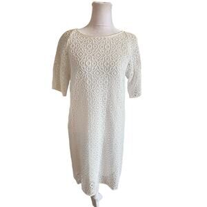 Tibi Dress Sonoran Soft White Eyelet Ivory Cutout Cotton Dress 6 EUC