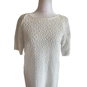 Tibi Sonoran White Eyelet Ivory Cutout Cotton Dress 6 EUC