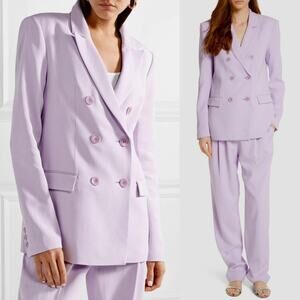 This celebrity favorite blazer is versatile enough to be dressed up with trousers for a power suit vibe or paired with jeans for a relaxed, off-duty style. The soft lavender hue adds a sophisticated pop of color, making it a statement piece for any occasion.