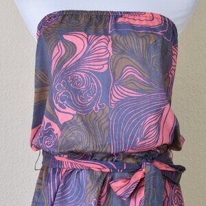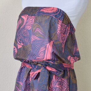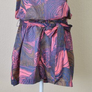 Elastic top hem and waist. Matching tie belt. Side seam pockets. Lightweight cotton