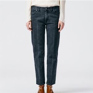 Tibi Stretch Denim Elfie Midrise Straight Leg Jean Asymmetrical Pockets Size 25