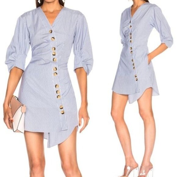 Tibi Stripe Asymmetrical Shirt Dress,