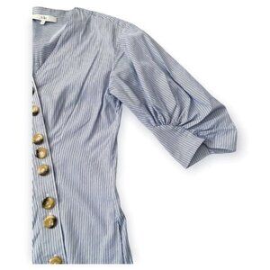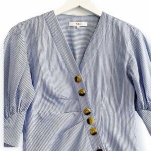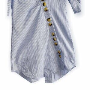 Tibi Stripe Asymmetrical Shirt Dress, Size 00, Blue