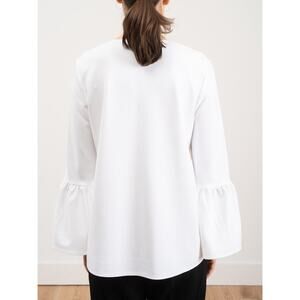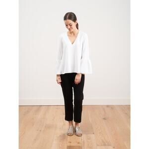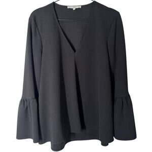 Tibi Structured Crepe V Neck Ruffle Top Black Small Basic Staple Minimal Luxury