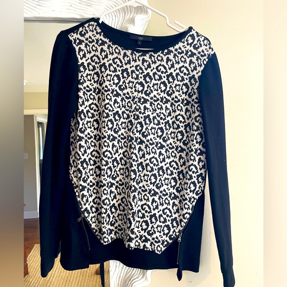 Tibi soft, thick material with side zips. Front is leopard, back is solid black.
