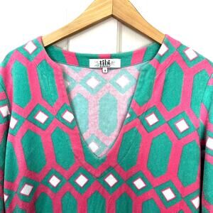 Tibi Terry Cloth Swim Cover Up Tunic Women's S Colorful Print 3/4 Sleeve V-Neck