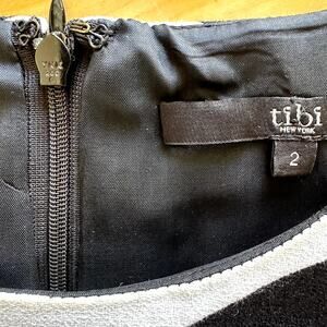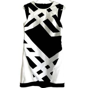 Tibi Transit Mini Sheath Dress Abstract Crew Neck 100% Cotton Black White 2