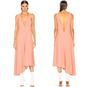 Tibi V Draped Midi Dress Size 0 Pink Haze Crepe Jumper Asymmetric Guest Designer