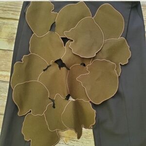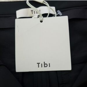Tibi "Valia" black dress pant with moss green cutout felt panel that's attached on one side and ties on the other. Front and back pockets, back ankle slits. NWT