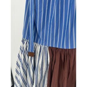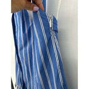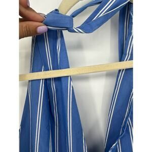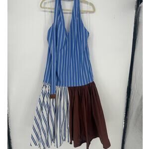 Blue and white cotton (66% Cotton, 34% Polyester). Hourglass. Sleeveless. Halter neckline. 51" from shoulder to hemline. Imported.