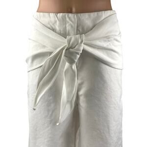 Tibi White High Waisted Belted Bow Tie Waist Wide Leg Palazzo Trousers Pants 8