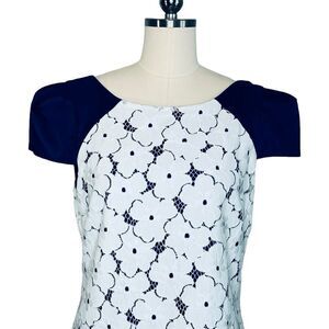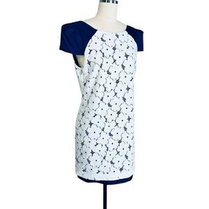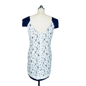 Tibi White Floral Lace Blue Silk Overlay Mini Dress| Size 8