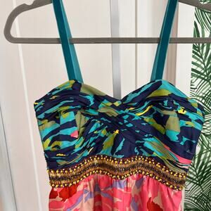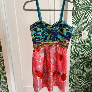 Tibi Womens 100% Silk Printed Beaded Mini Dress Size 6