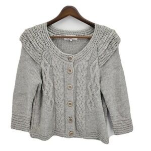 Tibi Womens Chunky Knit Cardigan Sweater Buttons Wool Mohair Gray Size Small