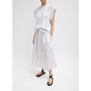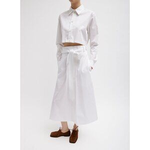 Tibi Womens Eco Poplin Back Wrap Midi Skirt White Cotton Tie Waist size 2